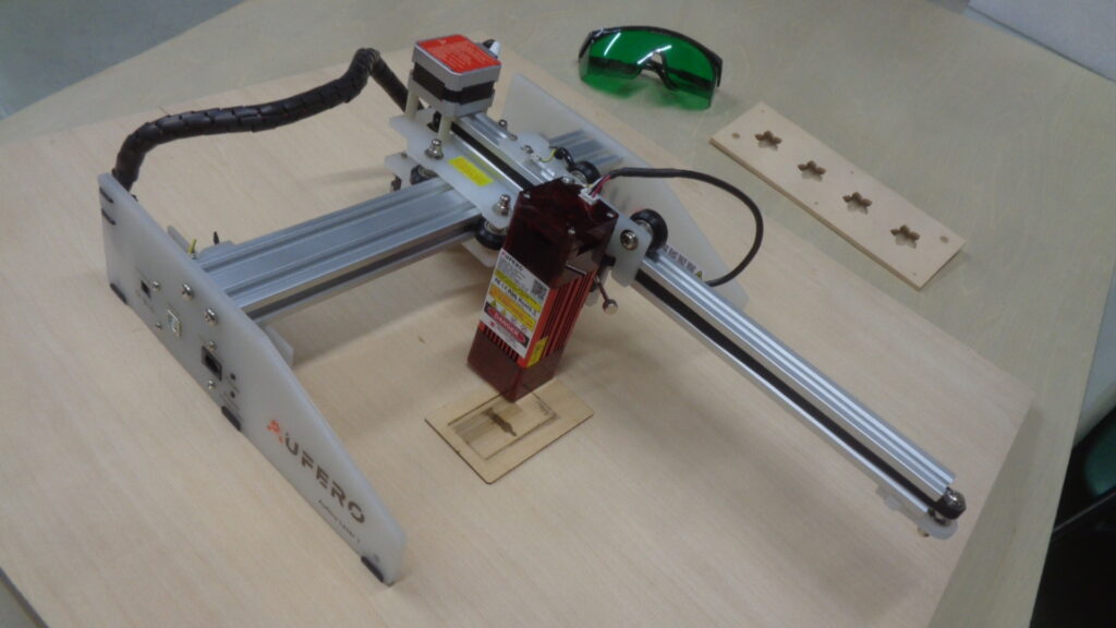 ❑自分で描いた文字や絵をレーザー彫刻してみよう!・簡単な絵や文字のデザインを書いてもらう・デザインをパソコンで読込み、木材チップにレーザー彫刻・キーチェーンを取付